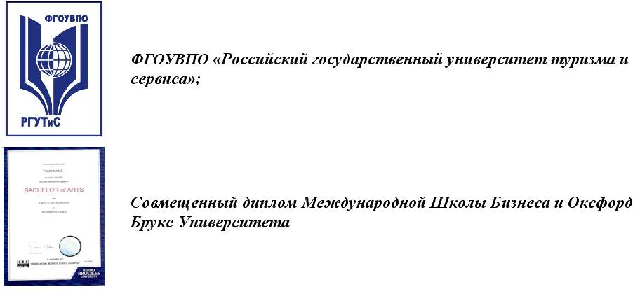 ФГОУВПО «РОССИЙСКОГО ГОСУДАРСТВЕННОГО УНИВЕРСИТЕТА ТУРИЗМА И СЕРВИСА» С МЕЖДУНАРОДНОЙ ШКОЛОЙ БИЗНЕСА,