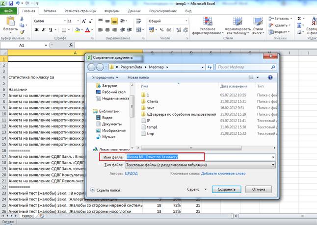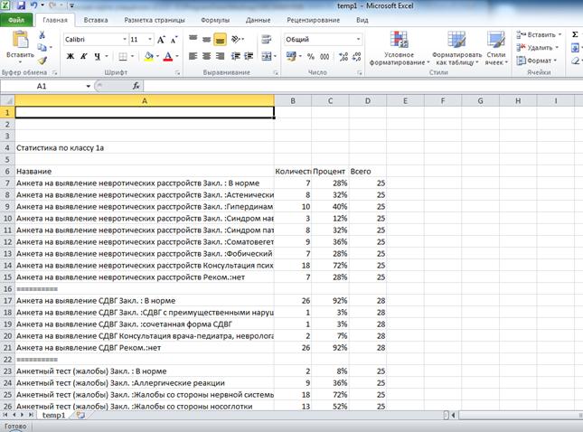 После этого открывается документ Microsoft Office Excel с данными обследования