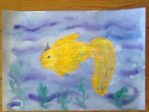 1. Восковые мелки + акварель: сначала - прорисовка деталей восковыми мелками, затем покрытие листа акварелью по мокрому.