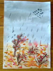 2. «Осенний пейзаж», акварель по мокрому листу.