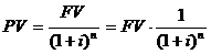 Из формулы (4.2) очевидно, что современные деньги - PV стоят больше, чем деньги, полученные в будущем - FV (через временной интервал, равный n).