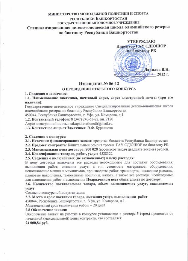 Заказчик – Государственное автономное учреждение Специализированная детско-юношеская школа олимпийского резерва по биатлону Республики Башкортостан (ГАУ СДЮШОР по биатлону РБ).