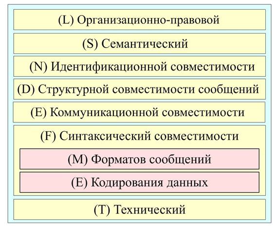 [9] Этому уровню соответствует понятие лингвистической совместимости автоматизированных систем (АС), которая в ГОСТ 34.003-90 определена как "частная совместимость АС, характеризуемая возможностью использования одних и тех же языковых средств общения персонала с комплексом средств автоматизации этих АС".
