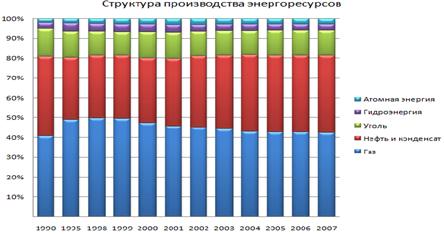 Какова же доля нефтяной промышленности в структуре производства энергоресурсов?