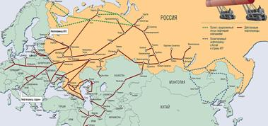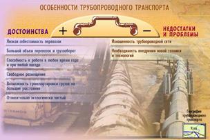 Для доставки продукции нефтепереработки потребителю используется трубопроводный транспорт. Анализ карты: «Транспортировка российской нефти ». Трубопроводный транспорт по объему выполняемой работы уже превзошел железнодорожный. Строительство трубопроводов в 3-5 раз быстрее и дешевле, чем железных дорог. По трубопроводам транспортируется почти вся нефть (97%), природный газ, многие продукты нефтепереработки (20%).
