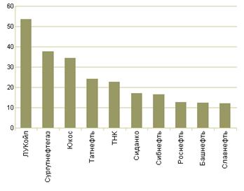 Ведущую роль в развитии нефтяного комплекса играют компании: “Роснефть”, “Сургутнефтегаз”, “ЮКОС”, “ЛУКойл”, “СИДАНКО”.