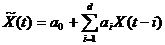 где параметр d определяет глубину предыстории или количество элементов временного ряда, используемых для предсказания его будущего значения. Если в качестве аргумента предиктора используется параметр времени t, то предиктор называется трендовым, например: