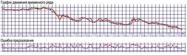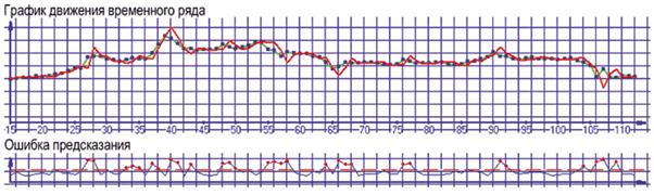 Данные примеры демонстрирует, что, несмотря на сложную динамику временных рядов, последние за исключением ограниченного числа участков могут успешно прогнозироваться с помощью сравнительно несложной модели нейронной сети.