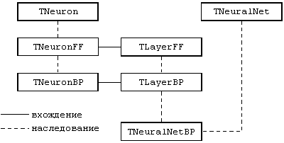 Рис. 3.4 Иерархия классов библиотеки для сетей обратного распространения