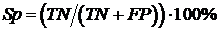 Специфичность (Sp) – процент истинно отрицательных случаев, которые были правильно идентифицированы моделью: