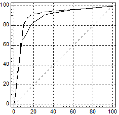 При визуальной оценке ROC-кривых нескольких тендерных карт сравнительную эффективность можно узнать исходя из их взаимного расположения относительно друг друга. Та кривая, которая расположена выше и левее (большее значение площади под кривой), свидетельствует о лучшей предсказательной способности соответсвующей модели.