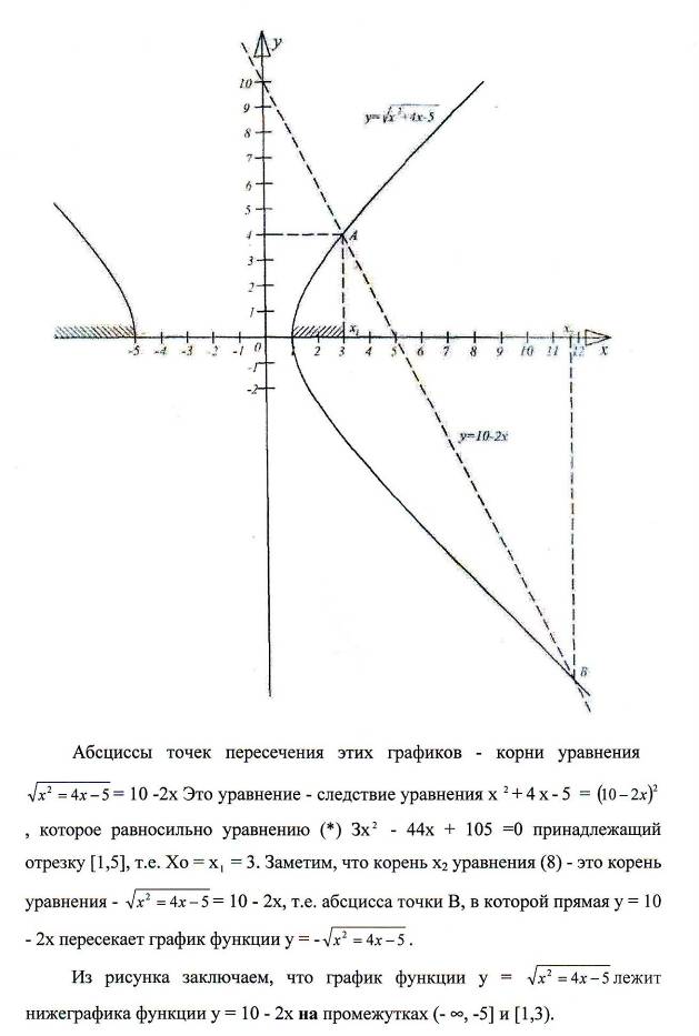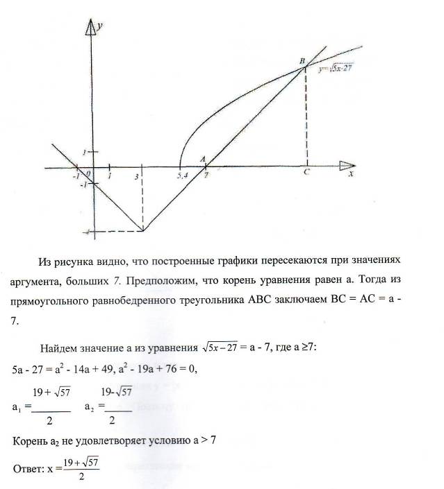 Вообще графическая иллюстрация часто помогает дать некоторые качественные ответы, найти число корней, грубо указать отрезки на числовой оси, где они могут находится и т. п. Даже в том случае, когда дать для них очную формулу трудно или вообще невозможно.