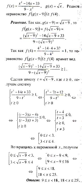 Область применения свойств функции при решении неравенств очень широка. Наличие свойств (ограниченность, монотонность и т. д.) функций, входящих в неравенства позволяет применить нестандартные методы решения к стандартным по формулировке задачам – неравенствам. Пример, связанный с композицией функций.