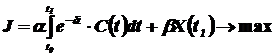 Целевой функционал включает два слагаемых. Первое слагаемое состоит из суммарного (интеграл) дисконтированного непроизводственного потребления за весь период управления: