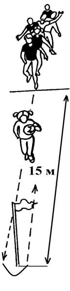 [5] Мишень-экран – гимнастический обруч диаметром 90 см обтягивается материалом, крепится к легкоатлетическому барьеру на высоте 1 м от пола (подбор мяча после броска осуществляют помощники судей).