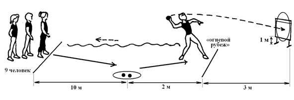 [1] Мишень-экран – гимнастический обруч диаметром 90 см обтягивается материалом, крепится к легкоатлетическому барьеру на высоте 1 м от пола (подбор мяча после броска осуществляют помощники судей).
