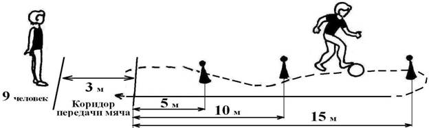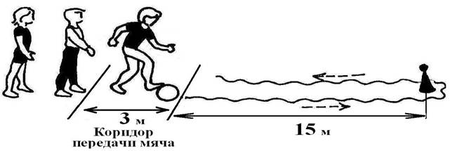 Передача мяча мальчиками осуществляется на расстоянии не менее 3-х метров от линии старта (коридор передачи). Ведение мяча осуществляется минимум в 3 касания в каждом направлении.