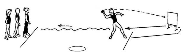При неудачном третьем броске в мишень-экран игрок должен оббежать мишень, затем вернуться к своей команде и передать эстафету.