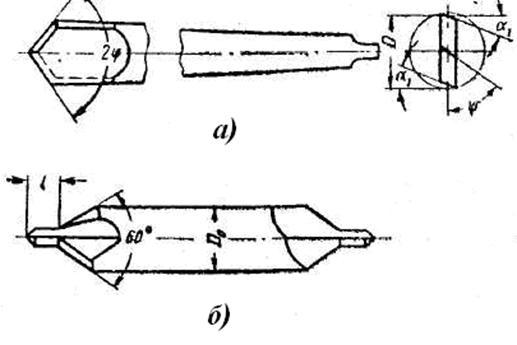 Центровочные сверла (рис. 1, б) применяются для получения в центровом отверстии вала внутреннего конуса с углом 60°, который является технологической базой при обработке детали в центрах.
