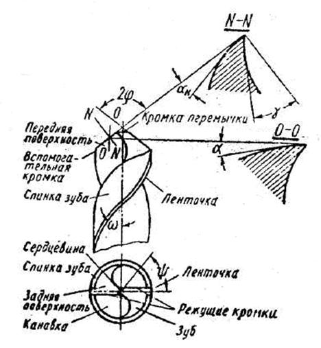 Основные конструктивные элементы и геометрические параметры спирального сверла определяют, следующим образом: