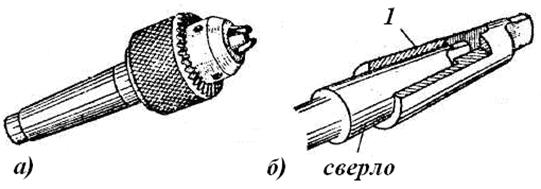 Рис. 6. а) Патрон для закрепления сверл с цилиндрическим хвостовиком; б) коническая втулка для закрепления сверл с коническим хвостовиком