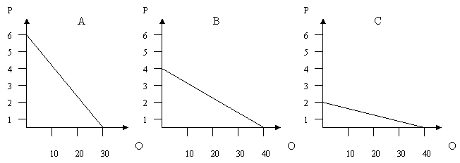 3. На рынке некоторого товара имеются три потребителя: A, B, C. Индивидуальные кривые спроса представлены на графиках. Постройте кривую рыночного спроса.