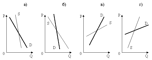Покажите (на основании паутинообразной модели), какой из изображенных рынков стремится к стабильному равновесию.