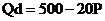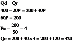 Qd = 300 – 20P, Qs = 20 + 50P.