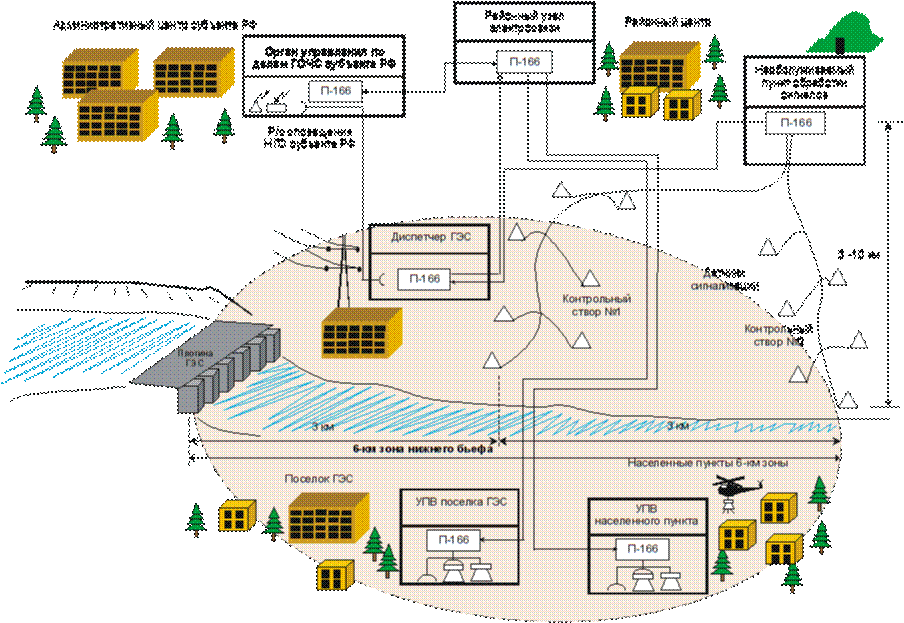 Схемы организации локальных систем оповещения в районах размещения потенциально опасных объектов: радиационно опасных объектов (РОО), химически опасных объектов (ХОО) и гидротехнических сооружений, гидроэлектростанций (ГЭС) приприлагаются.