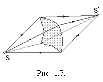 В случае когда отражение света происходит от вогнутой поверхности с кривизной большей, чем у эллипса, оптическая длина реального луча максимальна по сравнению с соседними лучами (рис. 1.9г).