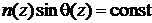 Предположим, что световой пучок распространяется в среде, показатель преломления которой плавно изменяется, но зависит только от одной координаты: n = n(z). Поскольку в плоскости XY показатель преломления остается постоянным, такие среды называются плоско-слоистыми. Исходя из уравнения эйконала, можно показать, что каждый световой луч в этом случае является плоской кривой, а угол q, который луч образует с осью OZ, удовлетворяет справедливому для любых зависимостей n(z) соотношению