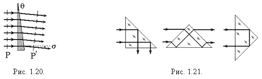 Если плоские границы раздела сред расположены под углом друг к другу, то такая оптическая система носит название призмы. На рис. 1.19а представлен ход лучей через призму с преломляющим углом q.