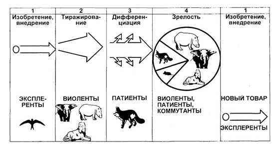 Выигрывают от любых заминок лидеров в деле улучшения товаров и фирмы-патиенты. Пользуясь растущей неудовлетворенностью потребителей качеством стандартных товаров, они захватывают все новые сегменты рынка. Так постепенно сужается сфера господства виолентов, вынуждая тех возобновить усилия по модернизации товара.