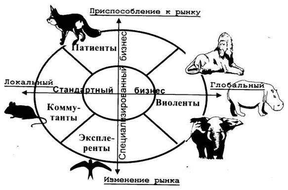 В целом мир компаний напоминает не клубок ожесточенно грызущихся между собой созданий, а хорошо организованное сообщество поразительно сходное с естественными, скажем, биологическими сообществами, где каждый вид имеет свое особое место под солнцем.