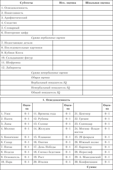 [9] Текст методики дается по: Тест исследования интеллекта для детей (WISC). СПб.,1991.