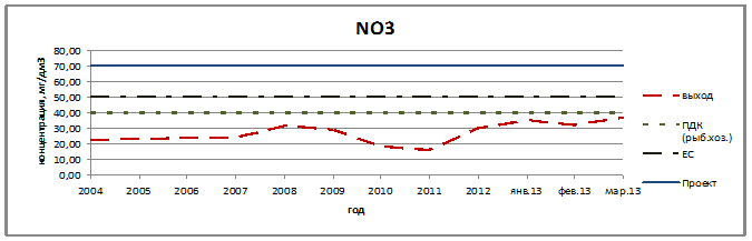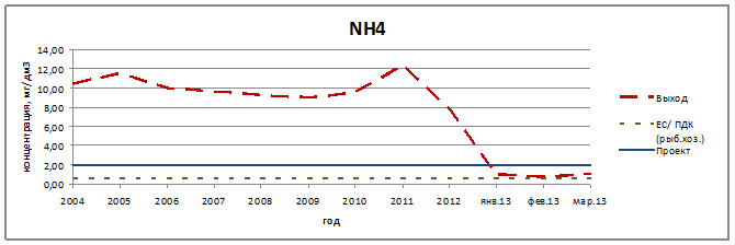 На рисунках 2-5 представлена динамика концентрации биогенных элементов (аммиака, нитритов, нитратов и фосфатов) до и после проведения реконструкции.