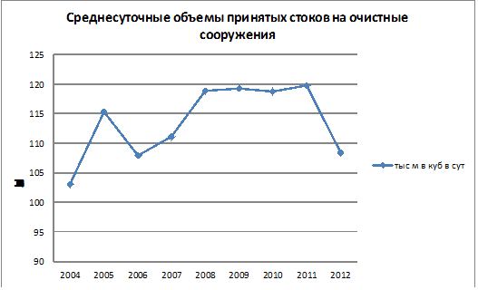 На рисунке 17 представлены среднесуточные объемы сточных вод, принятых на очистные сооружения канализации.