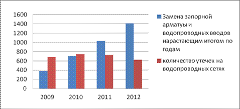Рис. 3 - График зависимости количества утечек от замены запорной арматуры и водопроводных вводов