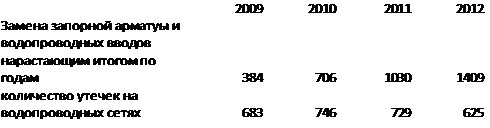 Для сокращения и устранения непроизводительных затрат и потерь воды ежемесячно производится анализ структуры, определяется величина потерь воды в системах водоснабжения, оцениваются объемы полезного водопотребления, и устанавливается плановая величина объективно неустранимых потерь воды. Важно отметить, что наибольшую сложность при выявлении аварийности представляет определение размера скрытых утечек воды из водопроводной сети. Их объемы зависят от состояния водопроводной сети, возраста, материала труб, грунтовых и климатических условий и ряда других местных условий. Они снижены с 32,5% до 29,7% от общего объема подачи воды в водопроводные сети.