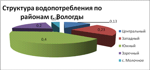 Рис. 4 - Диаграмма структуры водопотребления по районам г. Вологды