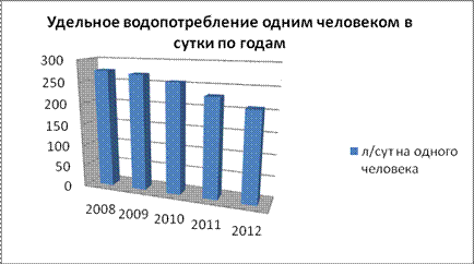 Рис.7 – Диаграмма удельного водопотребленияодним человеком в сутки по годам