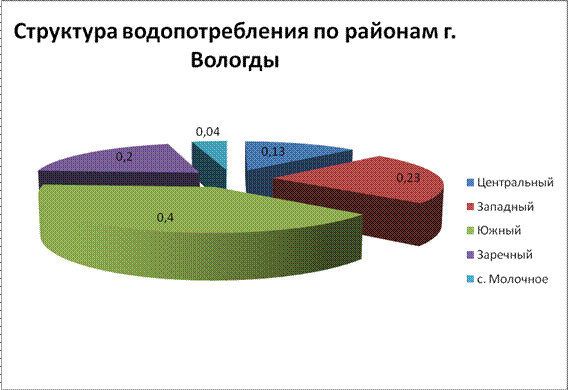 Рис.8 - Диаграмма структуры водопотребления по районам г. Вологды