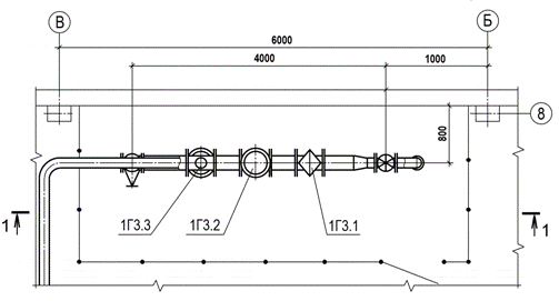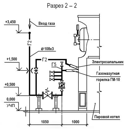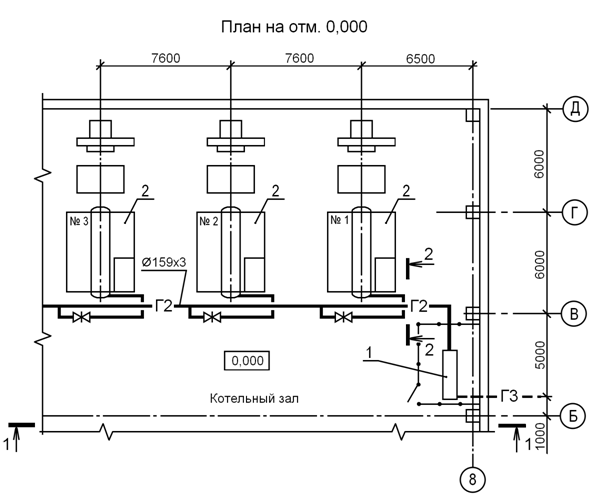 1 – Пример выполнения плана расположения оборудования и газопроводов котельной