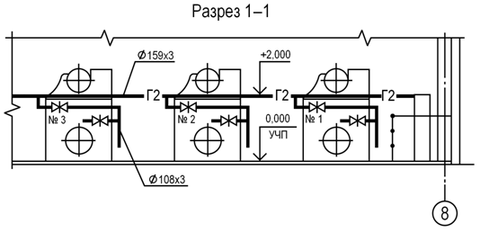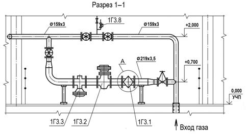 Приложение Д (справочное) Примеры выполнения плана и разреза газорегуляторной установки (ГРУ)