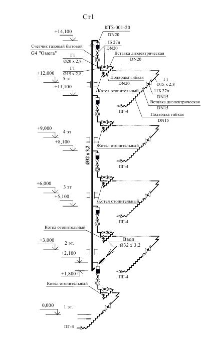 4.7 Стояки газопроводов обозначают маркой, состоящей из буквенного обозначения «Ст» и порядкового номера стояка в пределах здания (сооружения).