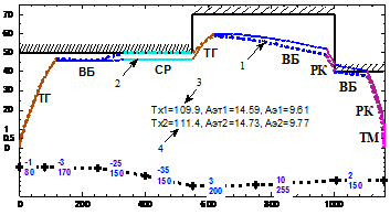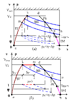 - при последовательности режимов ТГ/С-ВБ-СР значение р-функции в режиме ВБ изменяется от значения р=1 до р=h в конце режима ВБ (рис. 6.д-л);