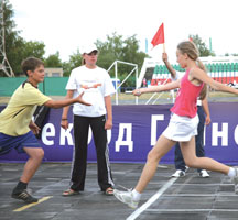 ...4 августа, 10 часов утра. Мандатная комиссия, разместившись с компьютерами в двух "газелях", продолжает свою работу, уточняя списки бегунов. В основном это школьники, которым отдано светлое время суток. А на дорожках стадиона идут последние приготовления к старту эстафеты.