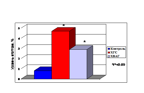 1. Апоптоз служит основным механизмом гибели как гепатоцитов, так и клеток лимфогистиоцитарного инфильтрата у больных ХГ В и С, при этом доля клеток в состоянии апоптоза у больных ХГ С в среднем протекает более интенсивно.