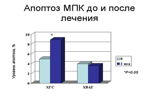 1. Исследование апоптоза МЛПК при ХВГ представляет собой недорогую методику, позволяющую быстро и эффективно оценивать динамику течения заболевания, в том числе на фоне применения различных лекарственных препаратов.