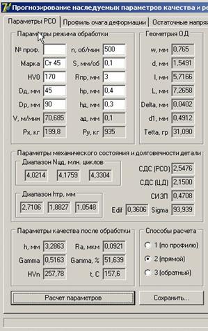 Рис. 1.10. Результаты расчета параметров качества поверхностного слоя